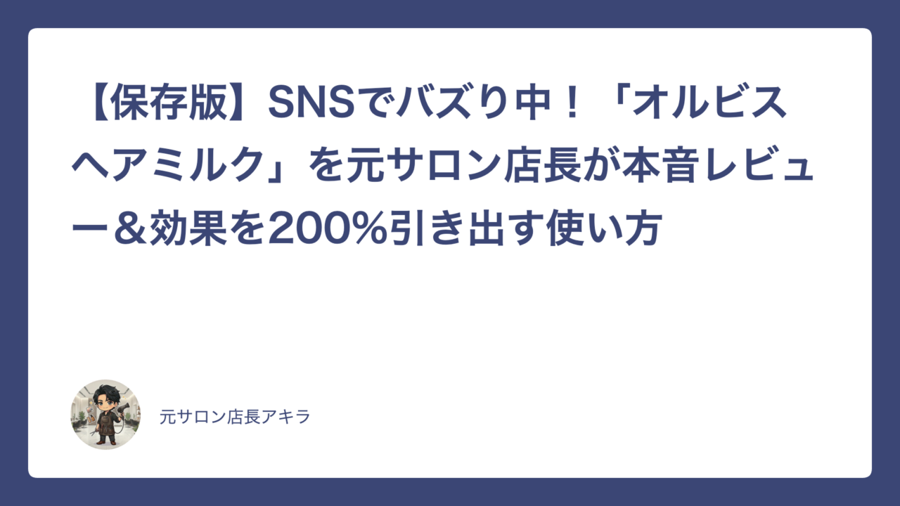 【保存版】SNSでバズり中!「オルビス ヘアミルク」を元サロン店長が本音レビュー&効果を200%引き出す使い方